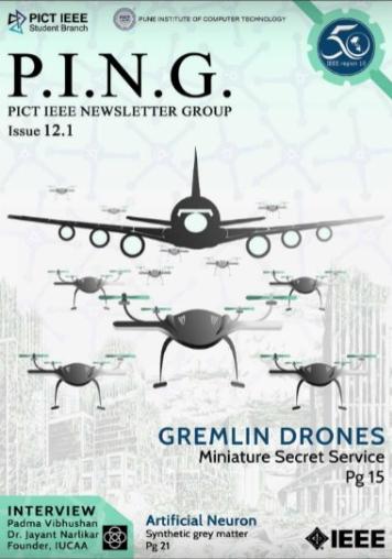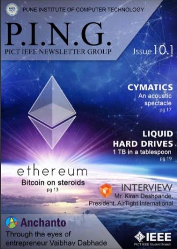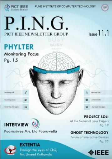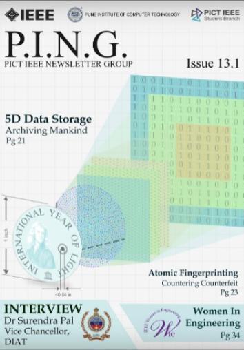 P.I.N.G. (PICT IEEE Newsletter Group) is the official technical magazine of PISB published twice a year. P.I.N.G. serves as a platform for individuals to portray their technical ingenuity. It highlights articles oncutting-edge technologies from technocrats all around the globe including students, industrialists and faculty members. It also features interviews of distinguished personalities in various technical domains. P.I.N.G. aims at keeping its readers up to date on recent developments in technology and helps them extrapolate their perceptions to contemporary ideas of modernisation. With the imminent Issue 16.1, be ready to get P.I.N.G.'d!