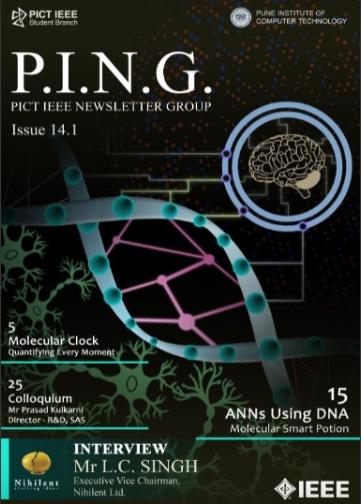 P.I.N.G. 14.1, released at Credenz’18 brings with it articles on recent trends in technology including perspectives of Industrialists, faculty members and students with articles like ‘Molecular Clock’, ‘Ballerina’ focusing on Cloud native Programming Language, ‘Tandem Solar Cells’. For Issue 14.1, we had an opportunity to have Mr L.C.Singh, Founder and CEO of Nihilent Ltd. and Mr Prasad Kulkarni, Head of R&D at SAS as a panelist. Our new feature article ‘ANN using DNA’, focuses on the bound-lessness of the universe and the way mankind perceives it.